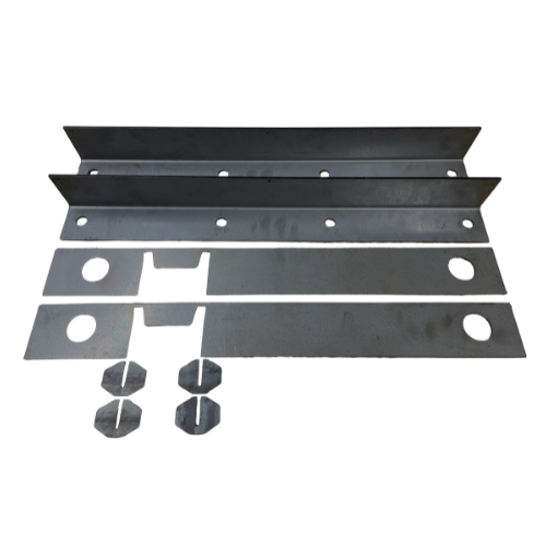 Built from 7-gauge (.19") thick steel, the kit includes four precision-cut plates (one formed inner plate per side for improved strength and reduced welding) and four tie-in plates that weld across each side of the body mount for additional frame rigidity.